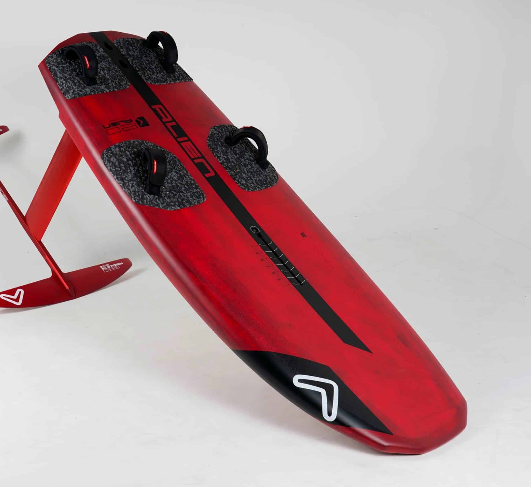 The Alien windfoil boards are easy to foil, forgiving, and feel light/playful. The board is available in 2 sizes;