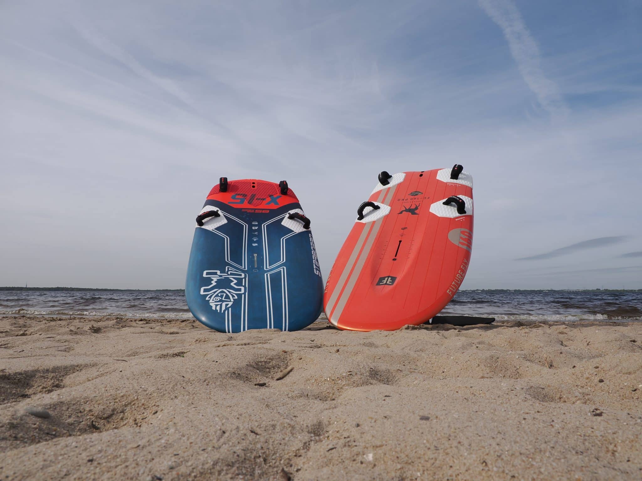 Wat beide boards gemeen hebben, is dat ze het beste presteren met een foil setup met kleine wings. Met de oude X-15 foilde we regelmatig met een 620 cm2 front wing of zelfs met een 720 cm2. Met deze boards is een 620 cm2 front wing al snel te groot. Overweeg je één van deze boards aan te schaffen, houdt er dan rekening mee dat je gemiddeld genomen met kleinere wings moet foilen om het uiterste uit deze boards te halen. Dit in combinatie met fuselages van maximaal 105 cm. Al merkte we dat op beide boards een fuselage van 105 cm ook al snel overpowered aanvoelt. Fuselages van ca 100 cm lang zijn ideaal.